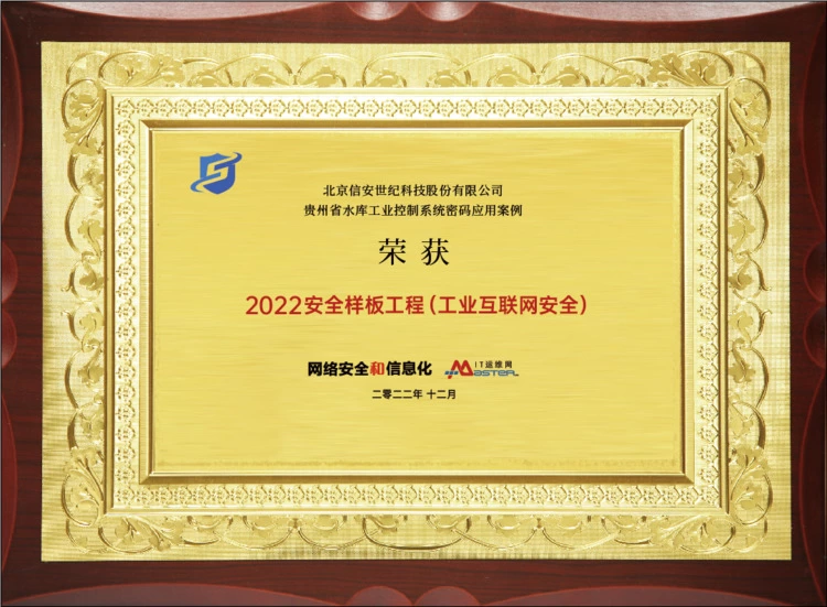 近日,北京信安世纪科技股份有限公司(以下简称“信安世纪”)贵州省水库工业控制系统密码应用案例凭借行业典型性和方案先进性,成功入选 “工业互联网安全”方向“2022安全样板工程”。