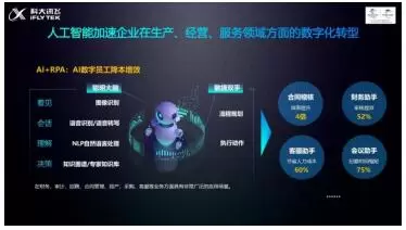 此外,科大讯飞进一步利用人工智能和RPA技术,打造人工智能的数字员工,在合同审核、财务助手、自动客服、会议记录、AI招聘等越来越多的场景得到了广泛应用,用AI帮助更多人从繁杂的重复劳动中解放出来,从而大幅提升工作效率,减少工作疏漏。