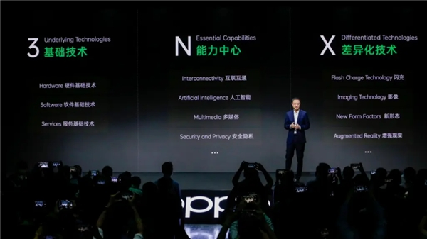 作为一家生态型科技公司,近年来,OPPO一直在积极探索和布局万物互融时代的前沿技术。在2020年INNO DAY上,OPPO正式提出万物互融概念,并公布了「3+N+X」科技跃迁战略,而“3”则代表了硬件、软件和服务的三大核心技术,是支撑OPPO万物互融新生态建设的坚实基座。
