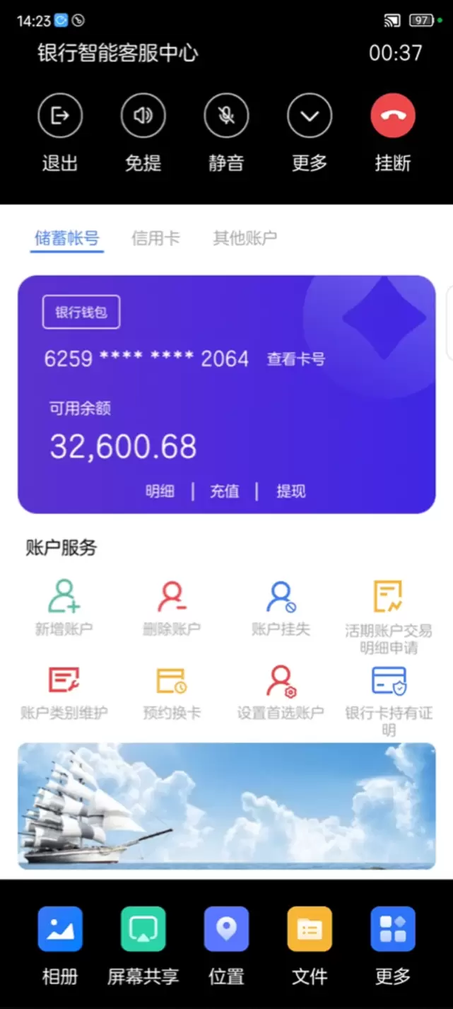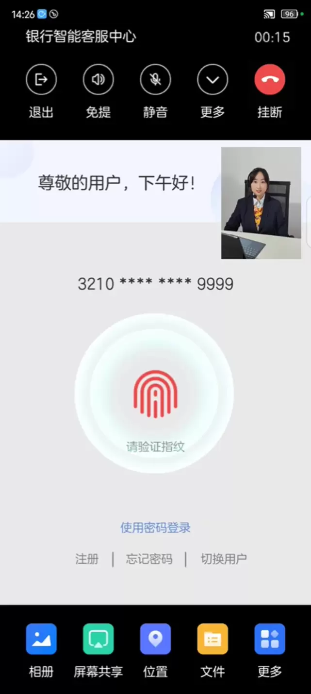 通过5G新通话技术与银行业务的深度融合,用户与客服中心通话过程中,可以快捷地自助完成各种查询业务和简单业务的办理,如余额查询、理财产品查询、银行卡临时挂失等;在遇到不清楚的问题或者复杂的业务场景时,也可以通过可视化业务菜单的人工服务,寻求人工客服的远程指导。