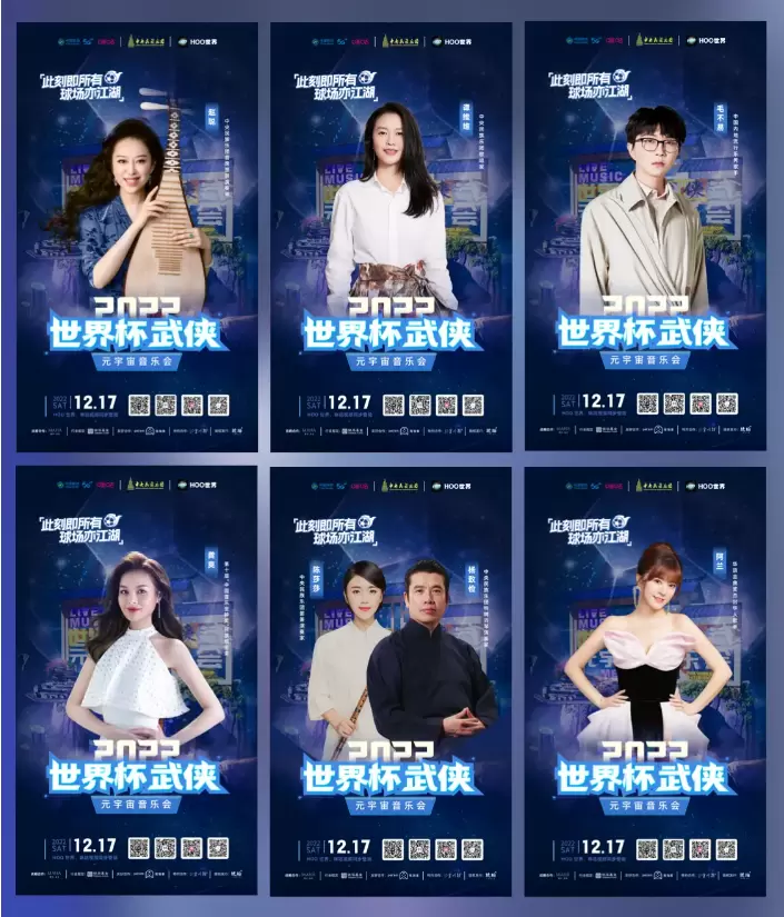 本次音乐会由致力于打造“新新人类的多重宇宙”的元宇宙平台HOO世界APP,携手2022卡塔尔世界杯持权转播商中国移动咪咕,与中央民族乐团三方联合主办。在中央民族乐团的艺术创意与策划之下,本次音乐会以世界杯· 武侠元宇宙为主题,在世界杯的热潮狂欢下,诚邀球迷、乐迷、武侠迷一起进入这场横跨古今的江湖世界,共同见证【此刻即所有,球场亦江湖】的豪情时刻!