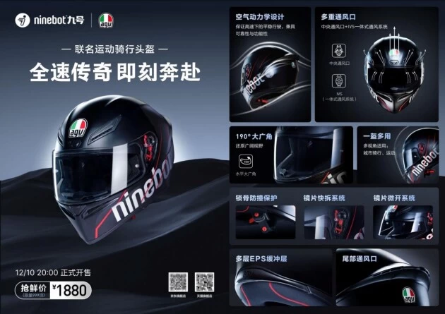 强强联合,突破维度!九号公司携手AGV带来联名运动骑行头盔