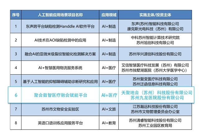 近日,苏州市工业和信息化局公示了2022年度苏州市人工智能应用场景示范项目名单。聚合数据申报的“聚合数智医疗融合赋能平台”项目成功入选。