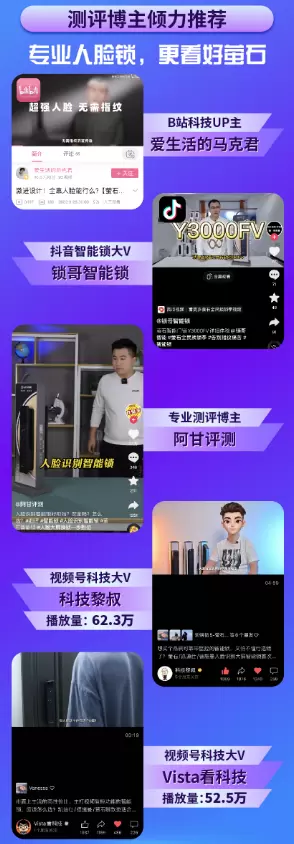 借助这些创作者力量,无形中强化了网友对萤石极光系列人脸视频锁的产品联想,引起了更多的萤石品牌的关注度与转化。