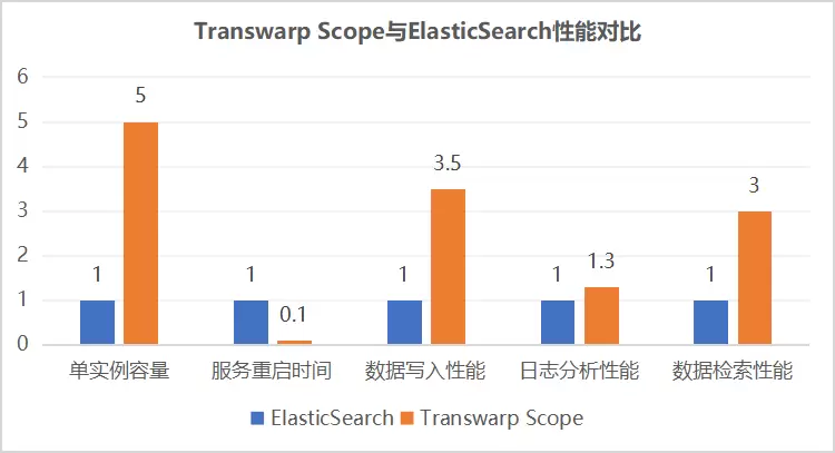 星环科技Transwarp Scope对内存进行创新优化,提高单集群单节点容量上限,单实例可突破至百TB的数据存储,是Elasticsearch的5倍以上,大大降低用户硬件成本。