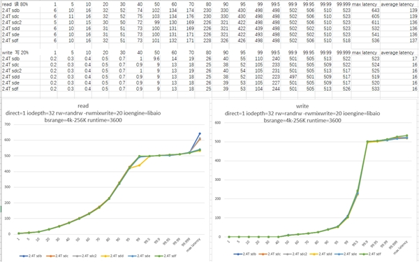 硬盘测试时延分布曲线