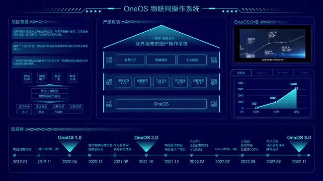 近年来,随着物联网行业的突飞猛进,物联网操作系统越来越受到行业关注。中移物联网作为中国移动布局物联网产业的专业公司,积极应对产业发展及市场需求,在2022年11月隆重发布了物联网操作系统OneOS 3.0版本,具备更强的实时、安全、高效特性,向上承接业务应用,向下屏蔽硬件差异,打通碎片化物联网场景,实现底层关键核心技术自主可控,对补齐我国产业发展短板、保障产业链安全稳定具有重要意义。