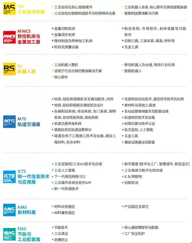 成都工博会旗下分设工业自动化、数控机床与金属加工、轨道交通、机器人、新一代信息技术与应用、节能与工业配套及新材料等七大主题展,全方位展示智能制造全产业链各个关键环节,上下游产业链互通,打造一站式商贸沟通交流平台,提升企业参展成效。