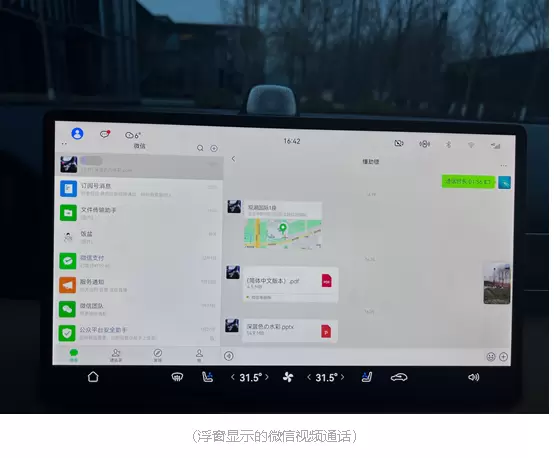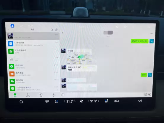 除了影音娱乐类应用带来的无缝流转体验,另一个让人惊喜的应用是微信,功能齐全到不仅能满足我在车上的社交需求,还可以应付简单的办公需求。社交场景下,平时同学朋友如果微信临时找我聚聚,发来一个餐厅地址,我可以像在手机上一样,打开这个地址,然后跳转到百度地图或高德地图直接导航过去,非常方便。