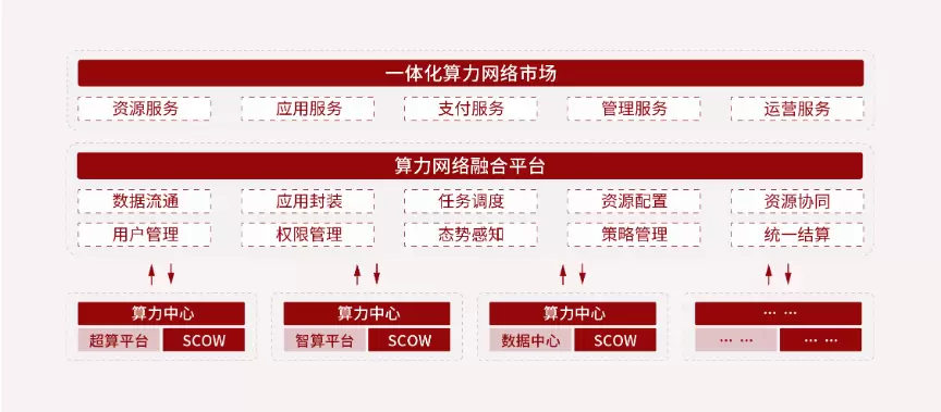 SCOW实现的一套标准的平台接口,为实现跨中心的算力融合打下了基础。团队正在SCOW实现的异构平台统一抽象基础上,进行一体化算力网络融合平台的研制,旨在打通算力网络中各算力中心的管理、使用、结算通道,连通算力孤岛,实现算力灵活接入、统一调度;解决多应用灵活接入,复杂网络环境下低延迟高性能应用可视化技术,多中心多集群文件传输与管理,算力中心的标准化运营管理,多中心统一结算等问题。