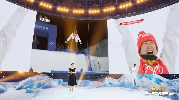 冬奥冠军徐梦桃此次也带着自己的数智人“桃小桃”登上盛典舞台,并同台带来个人单曲《我是第一》,徐梦桃化身“冰雪女王”一步步与“桃小桃”相遇,合力演绎出全情追梦的坚持与热爱,带来震撼人心的力量。