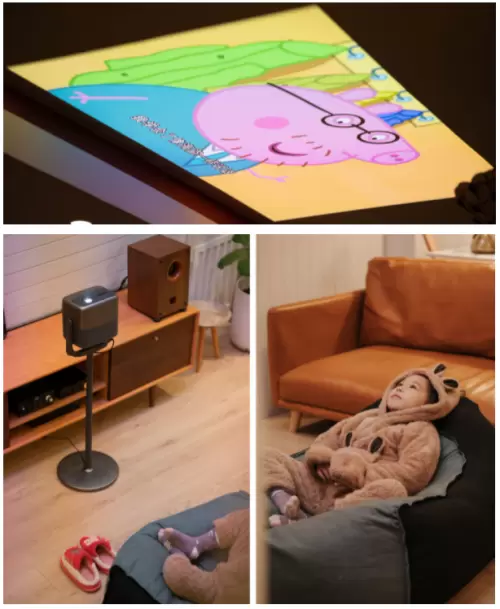 虽然传统投影的形态一直在变,但实际使用上的体验却往往被厂商“忽略”,比如吊装安装,需要提前预埋管线,对于已经装修完的家庭极其不友好,即便是能用落地支架和桌面使用的产品,也存在调试不便的问题。