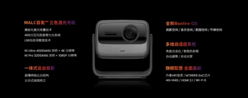 幸运的是,除了海信外我们终于看到第二个将三色激光作为投影光源的品牌出现。从坚果刚刚发布的N1系列三色激光云台投影可知,坚果历经3年投入成功自研出名为“MALC目氪”的三色激光光机,已经从根本上解决了三色激光光源成本高、体积大以及散斑这三大问题。