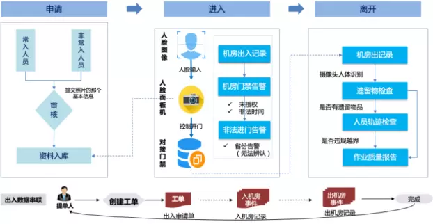充分利用数字信息化,保证工单施工流程安全性,做到人员、证件、照片统一,实现进门登记、出门注销、人像对应、查询历史记录等功能,可高效记录、存储、查询汇总来访人员的相关信息,实现预约审批,提高安全管理与服务效率。