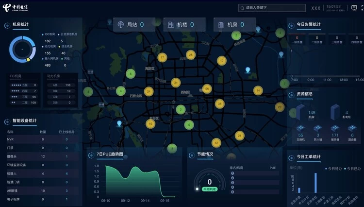 近两年,随着业务发展,北京电信的网络服务规模不断扩大,机房运维压力与日俱增,运维成本也水涨船高。机房管理员通过纸质文档记录、依赖人力运维的方式,耗时耗力易遗漏,同时也存在着预警能力不及时、资产价值开发率低等难点。
