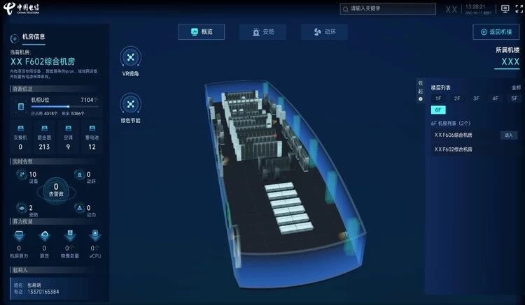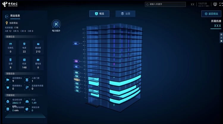 亚信科技借助数字孪生技术实现资源全景可视化,目前已帮助北京电信实现3间标杆机房的1:1仿真呈现和180间认领机房的动态模型呈现。完成机房内部的资产、环境、监控、运营等全景可视化监控管理,所见即所得。建立智慧机房孪生体,对机楼、机房、设备进行仿真还原,局站级、机楼级、机房级、设备级全业务数据可视化呈现,有效解决数据质量差、运营效率低等问题,即便是异地机房也能实现大屏上的直观体验展示。