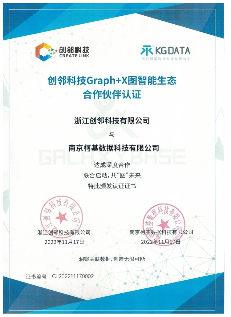 11月17日,南京柯基数据科技有限公司(文中简称“柯基数据”)与浙江创邻科技有限公司(文中简称“创邻科技”)签署合作协议,正式加入创邻科技“Graph+X”图智能生态合作体系,开启全方位合作。