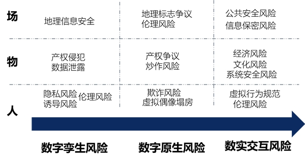 伴随技术的不断迭代,元宇宙的发展将经历从数字孪生到数字原生,再到数实共生的演进过程,“人、物、场”也将在不同的发展阶段产生出不同的创新应用模式。但与此同时,元宇宙作为多种新兴数字技术的交汇点,数字世界和现实世界的融合体,与“人、物、场”相关的信息和应用被误用、滥用的问题和伦理挑战,也会更加突出而复杂,给不同阶段元宇宙的发展,都会带来诸多阻碍。