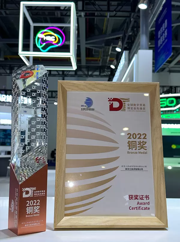 12月13日,首届全球数字贸易博览会先锋奖(DT奖)颁奖仪式在杭州国际博览中心举行。浙江省商务厅副厅长胡真舫、杭州市商务局局长王永芳以及商务部服贸司相关业务负责人出席仪式并颁奖。紫光股份旗下新华三集团零碳智慧园区解决方案在本次评选中突出重围,该方案从构建绿色底座到聚焦业务场景,实现了园区“零碳+智慧”能力的全栈升级,将全方位推动新一代“零碳智慧园区”的建设。