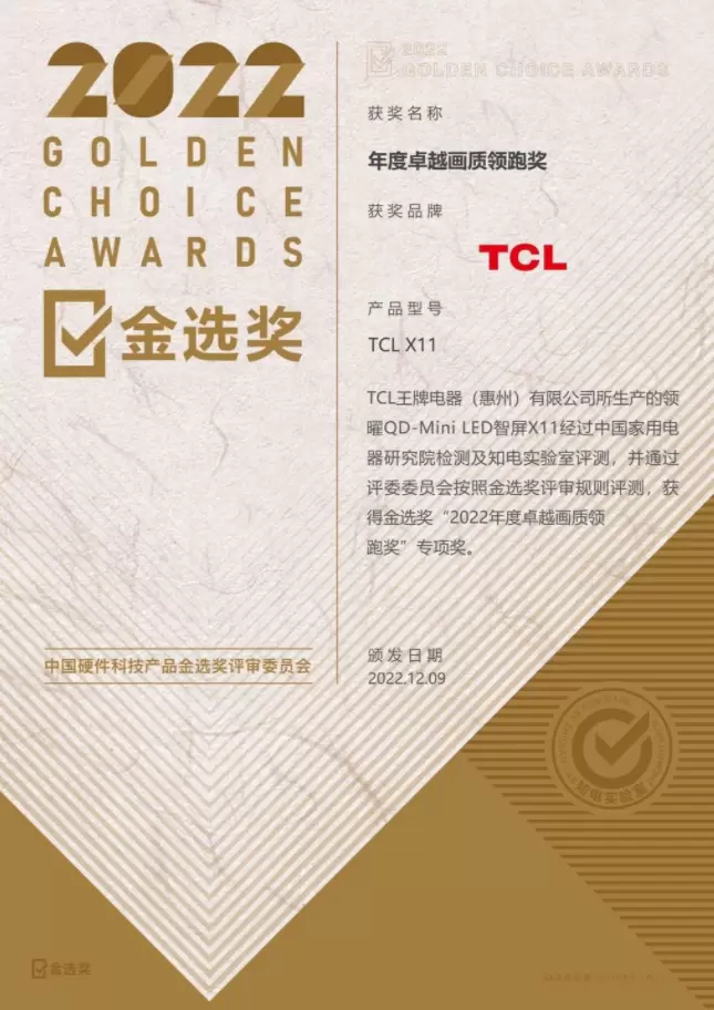 用户满意度稳居第一,旗舰产品拿下年度金选奖,这波选TCL值透了!