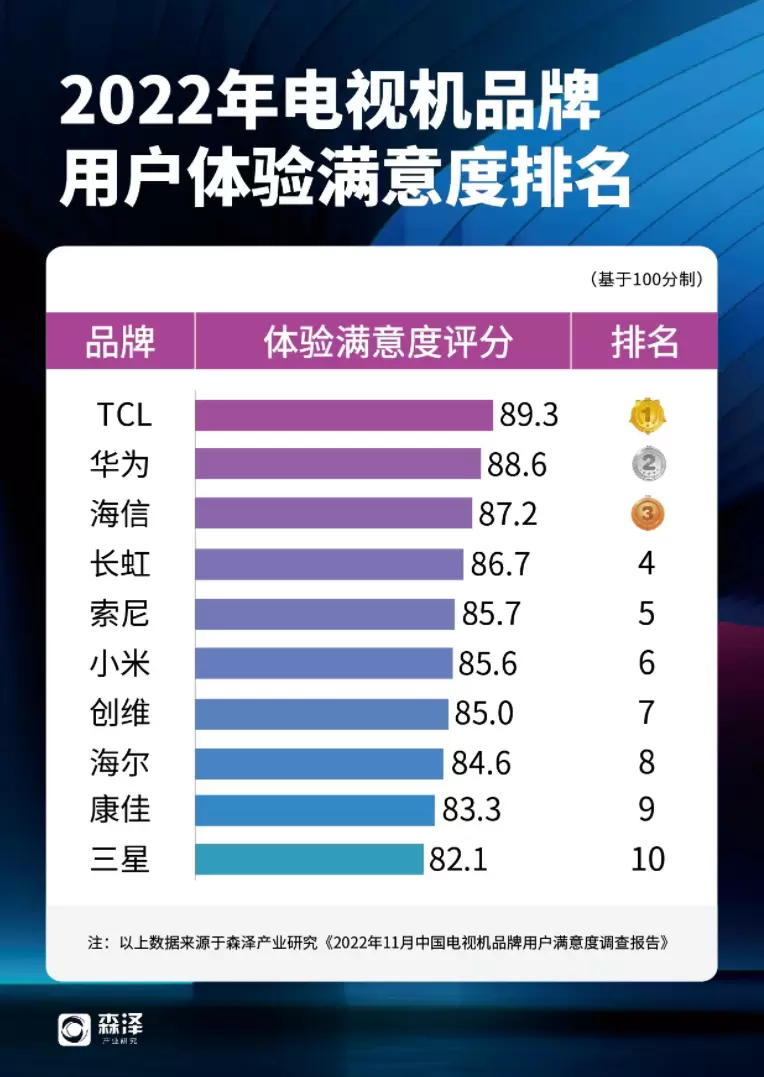 今天闲来无事刷手机,发现我家电视的牌子霸占了头条——TCL竟然在国内知名产业研究调研机构森泽的最新中国电视机品牌用户满意度调查报告中横扫一片,接连拿下了用户好感度、用户体验满意度、用户忠诚度等多个第一。好家伙,我不过是买来看世界杯的,没想到捡了个大宝贝!