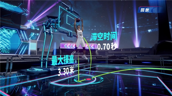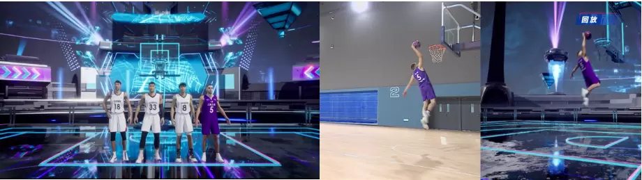 在观赛回放环节,除了常规视角,观众更能获得诸如篮框、地板等非传统观赛视角,大大增加了观众的沉浸感和趣味性……同时,观众还可得到如摸高高度、滞空时间等关键信息。