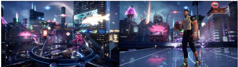 赛博朋克风球场寓意着缔造梦想城市新未来。