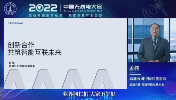 12月20日,2022中国无线电大会拉开帷幕。在主论坛上,高通公司中国区董事长孟樸发表主题为“创新合作共筑智能互联未来”的视频演讲。