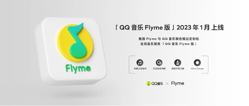 12月21日,QQ音乐与魅族 Flyme宣布达成合作,针对 Flyme 系统特点和用户使用习惯,推出特别定制的在线音乐服务 ——QQ音乐Flyme 版将于 2023 年 1 月正式上线。QQ 音乐 Flyme 版将依托 QQ 音乐优质的内容及其在音频技术领域的优势,融合 Flyme 在系统交互和 UI 设计上的出色表现,为广大用户带来更专业、更极致的音乐专属体验。