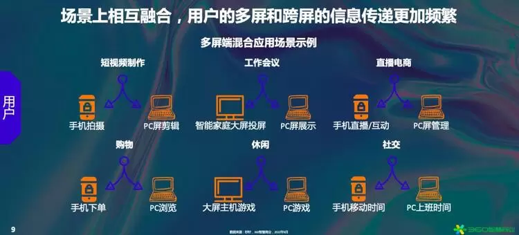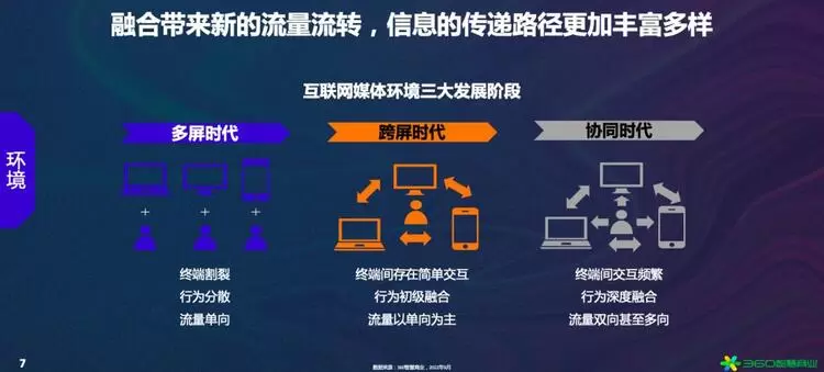 互联网媒体环境的发展从多屏、跨屏、到融屏——设备间行为的深度融合,带来新的流量流转,由单向流量,变为双向甚至多向。覆盖工作与生活,设备融合的使用场景将对数字化设备的运用有更深度的挖掘。
