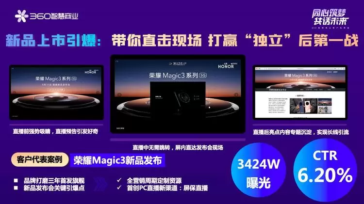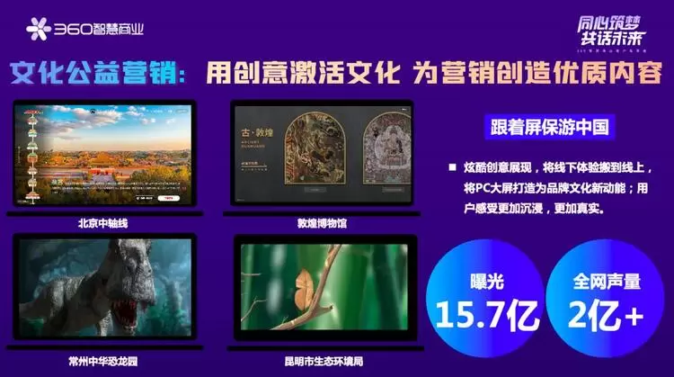 围绕360PC锁屏画报,360智慧商业通过丰富多样的直播活动、IP营销等内容创新,为全行业提供了围绕“第四块屏”的营销解决方案,为营销行业打开新思路提供了更多可能。