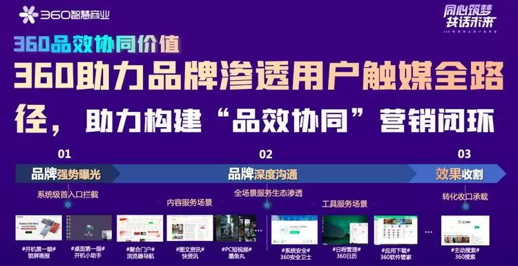 基于自身在产品、用户、场景体验等多方面的优势,360在持续挖掘PC端价值的同时,也通过对PC+MoB+IoT多端用户产品进行体验优化和升级,助力品牌渗透用户触媒全路径,打造起拥有多元、立体触点的智能营销生态体系,构建从品牌曝光、用户沟通到效果收割的“品效协同”的营销闭环。