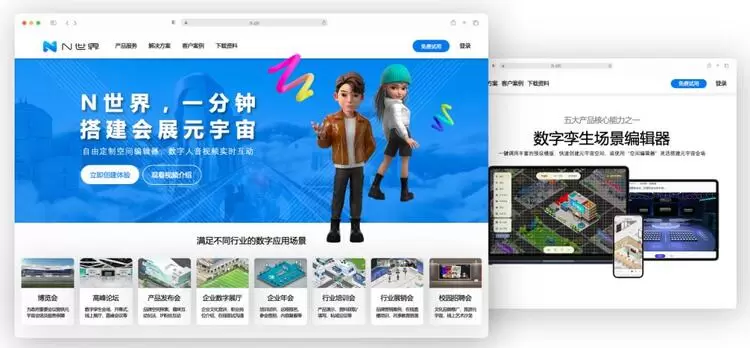 作为基于Web3.0精神打造的会展营销元宇宙平台,N世界通过3D建模将线下会展场景与线上虚拟空间相结合,在XR技术的加持下,通过空间特效与自由视角营造的视觉表达大幅提升了虚实结合的现实感与沉浸感。在N世界,每个参与者都能够生成自己的虚拟形象,在其中以第一视角体验沉浸式的虚拟空间,通过PC大屏,解锁全新的元宇宙感官体验。
