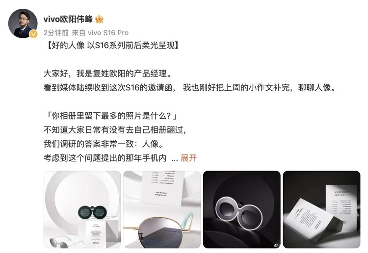 好的人像,用光说话。在vivo十年光影人像探索史中,vivo S16系列完成从“照亮你的美”到“照亮我的美”,再到“照亮你我tā”的变化,首创行业双面柔光人像,让每一个场景都能被柔光照亮。正如vivo产品副总裁欧阳伟峰所讲:“我们希望,在那些值得被记录的瞬间,有家人,有伙伴,有你,有tā,还有vivo S。”,vivo S16系列既是vivo S系列对人像的全新探索,也是S系列对自身多年人像能力的回顾与整合,将为用户每一个值得纪念的瞬间带来理想的人像之光。
