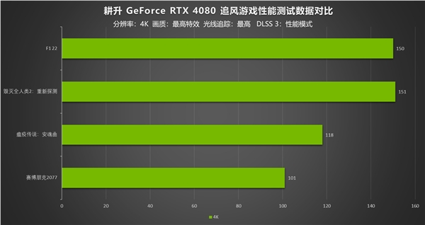 耕升 GeForce RTX 4080 追风 16GB是一款定位4K的显卡,优秀的性能和全新的NVIDIA DLSS 3能使其在运行4K游戏时也能保持不错的帧率。在测试中,以4K分辨率测试各游戏性能,其中4K分辨率使用DLSS 3 性能模式。