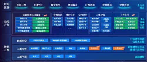 随着IT软硬件、通信技术的发展,以及各种新型测绘技术和数据建模手段的加持,促使MapGIS全空间一张图产品从数据、功能、应用等方面升维,在数据方面新增接入栅格体元、网格数据、时空数据、全景数据等数据类型,实现从二维平面、到三维立体、再到四维时空的多维数据管理;在功能方面新增了多个资源管理与可视化组件,以及多个CIM应用组件,以更好地支撑全空间一张图行业应用开发;在数据和功能的支撑下,根据行业特性定制开发模板,根据行业数据特点,组合通用功能和行业特色功能,实现行业应用快速定制,将应用范围已延伸至实景三维、CIM平台、数字孪生城市 、自然资源、智慧城市、智慧农业等众多领域。