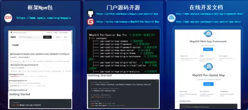全空间一张图产品提供丰富的开发资源,相关NPM包已上架NPM官网,部分源码开放托管至Github和Gitee,也可以从smaryun云线上获取开发资源和资料,便于开发者快速搭建全空间一张图行业应用。