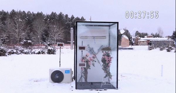那么,面对室内外都是-30℃的极寒环境,空调在户外能将这一层厚厚的冰花完全融化掉吗?