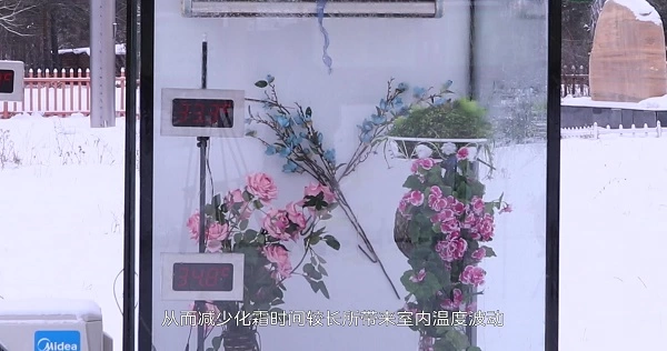 由于当天一直在下着小雪,经过一昼夜风霜的洗礼,挑战时整个玻璃房已经被厚厚的冰霜所覆盖,从外往里看,玻璃房中的空调和花朵都已经模糊看不清了。此项测试主要有三大难点: