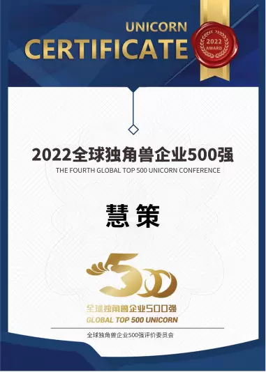 12月22日,由青岛市人民政府和中国人民大学中国民营企业研究中心共同主办的“第四届全球独角兽企业500强大会(2022)”在青岛举办。一体化智能零售服务商慧策受邀出席本次大会,并获颁“2022全球独角兽企业500强”证书。
