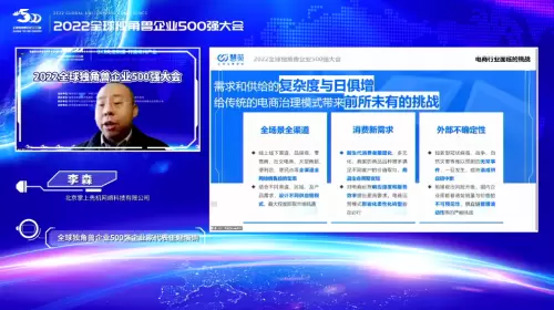 会上,慧策高级产品专家李森作为全球独角兽企业500强企业代表,向与会嘉宾分享了慧策在助推数字经济与实体经济融合发展等方面的经验。