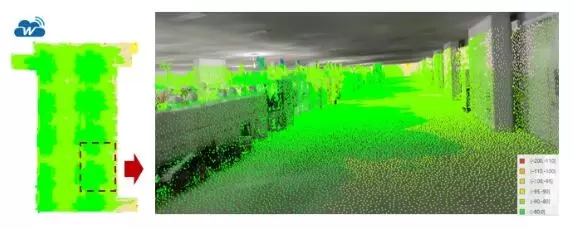 基于激光点云的室内环境数字还原:通过对工厂环境进行激光扫描,实现3D实景高清环境建模,完成工厂结构还原;自动识别工厂内生产线设备、货架物料、车辆物品、空调管道等环境信息及材质信息,精准还原真实无线传播环境,精度可达厘米级。