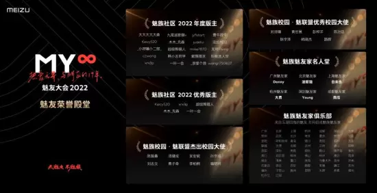 同时,在「魅友大会 2022」现场魅族也为包括入选了魅族魅友家名人堂的六位魅友、魅族社区获奖代表、魅联盟获奖代表、魅友家 MY+ 获奖代表举行了颁奖仪式。