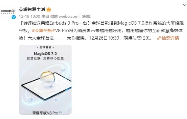 荣耀平板V8 Pro六大首发集结完毕 12月26日发布会揭开最后面纱