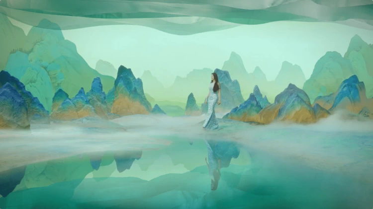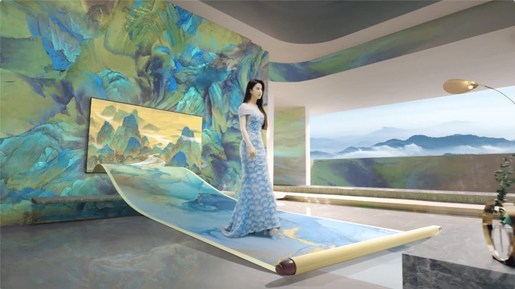 千峰万壑,绵延不绝,江河浩渺,烟波无尽。宋代少年天才画家王希孟,以极其精细的笔触,强烈的青绿色彩,将神州河岳的雄浑瑰丽尽收笔底,以咫尺画境而得千里之趣。徜徉于绚烂灵动的青绿山水之间,刘亦菲裙裾飞扬,飘飘欲仙,挥手之间,揽江河日月的磅礴入怀;回眸一笑,让浩浩汤汤的东方气韵如花绽放;以超然气场探索着创维壁纸电视营造的万千景象。在《创维,看见东方美》TVC大片中,创维壁纸电视在ADS XDR Display的科技加持之下,不但完成了对“宋代版航拍中国”的精准还原,更在水天一色中,与刘亦菲共同诠释出“天人合一”的东方造境。