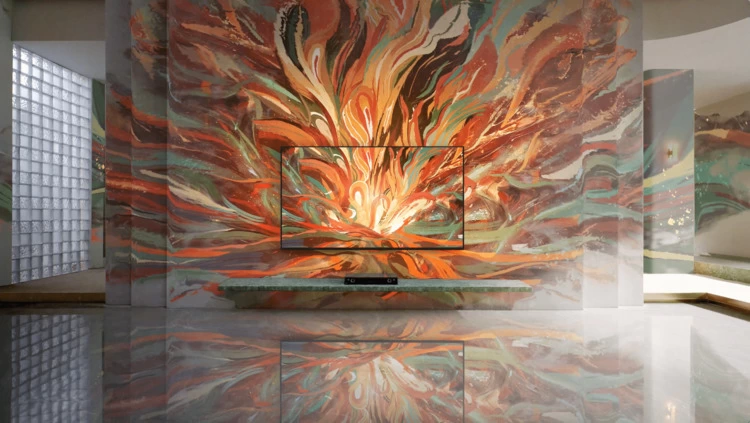 “素手把芙蓉,虚步蹑太清。霓裳曳广带,飘拂升天行”,刘亦菲启动创维壁纸电视Q53系列内置的“艺术模式”, 弹指之间就将观众的视线从只此青绿的千里江山,拉回到大漠黄沙,马嘶驼吟的敦煌胜境。在创维30+画质调校技术的精准呈现之下,色彩斑斓的飞天,无拘无束地飞翔于漫天花雨中,以无限自在释放出强大的动感与生命的活力。“敦,大也;煌,盛也”,创维壁纸电视Q53系列以“盛大辉煌”的视觉体验,让历经千年沉淀,满溢国风高级感的“敦煌色”,以强烈的装饰感折射出华夏文明热烈而淳厚的民族特性与独树一帜的东方艺术美学。