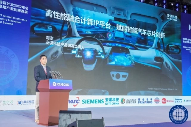 12月26日,中国集成电路设计业2022年会暨厦门集成电路产业创新发展高峰论坛(ICCAD 2022)在厦门国际会展中心开幕。安谋科技(中国)有限公司(以下简称“安谋科技”)产品研发负责人刘澍受邀出席高峰论坛,并发表了题为《高性能融合计算IP平台,赋能智能汽车芯片创新》的演讲。刘澍介绍了安谋科技在汽车电子领域的技术积累和领先优势, 以及通过打造高性能融合计算IP平台,推动汽车智能芯片创新。