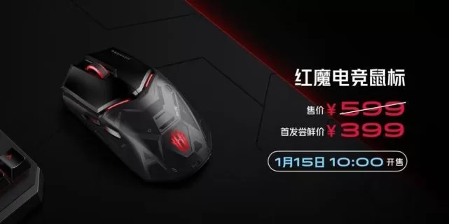 红魔三模电竞鼠标,搭载业界最高水准的原相3395传感器,GM8.0黑曼巴微动,在响应速度和点按手感上都属顶级梯队,首发价仅399元!此外还有四款电竞鼠标垫,魔姬兔年限定版仅需59元、魔姬夏日梦境版仅需229元、氘锋战士纪念版仅需159元,400*900*4大尺寸的红魔电竞桌垫氘锋战士至尊版仅需99元。以上产品均将于1月份同期上市!