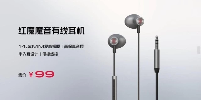 红魔魔音有线耳机,采用超大动圈单元,可以让玩家感受到游戏环境中的音效环绕立体感与现场感,有type-c和3.5mm两个版本,售价均为99元。