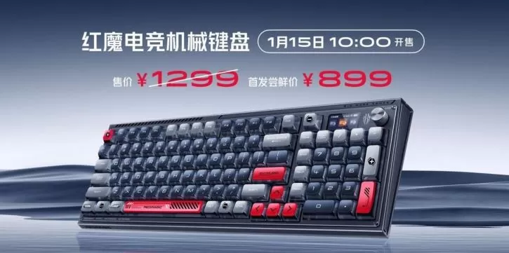 红魔三模机械键盘搭载TTC快银轴V2,PBT+PC组合键帽,拥有极为出色的gasket软弹手感。2.4G无线延迟低至1ms,同时还有全球首创的可交互屏幕,随时通过小屏查看电脑状况。其将于12月29日开售,首发价仅需899元。